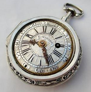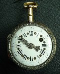 Ashley then described in detail his 4 watches, their origins and faults on acquisition. The oldest is a 1720’s Bordier a Geneva – Quarter Repeater – Silver pair case with champlevé dial, retailed by Kaltenbrunner, Prague. This is shown in Fig 1.