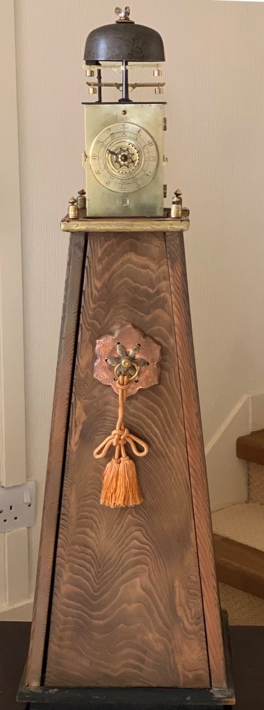 The bell clock has the movement inside the bell. The dial is not easily visible and the indication of the passing of time is by striking of the bell. He started off with a French movement off eBay. The aim being to convert it to horizontal use inside the bell. There are a few complications. The pendulum is no longer going to function. It must be replaced by a balance wheel of some sort. The bell hammer no longer has gravity to assist it striking a gong. The clock uses temporal time not mean time. i.e. hour length varies day and night so that there are even numbers of day and night ‘hours’ throughout the year.