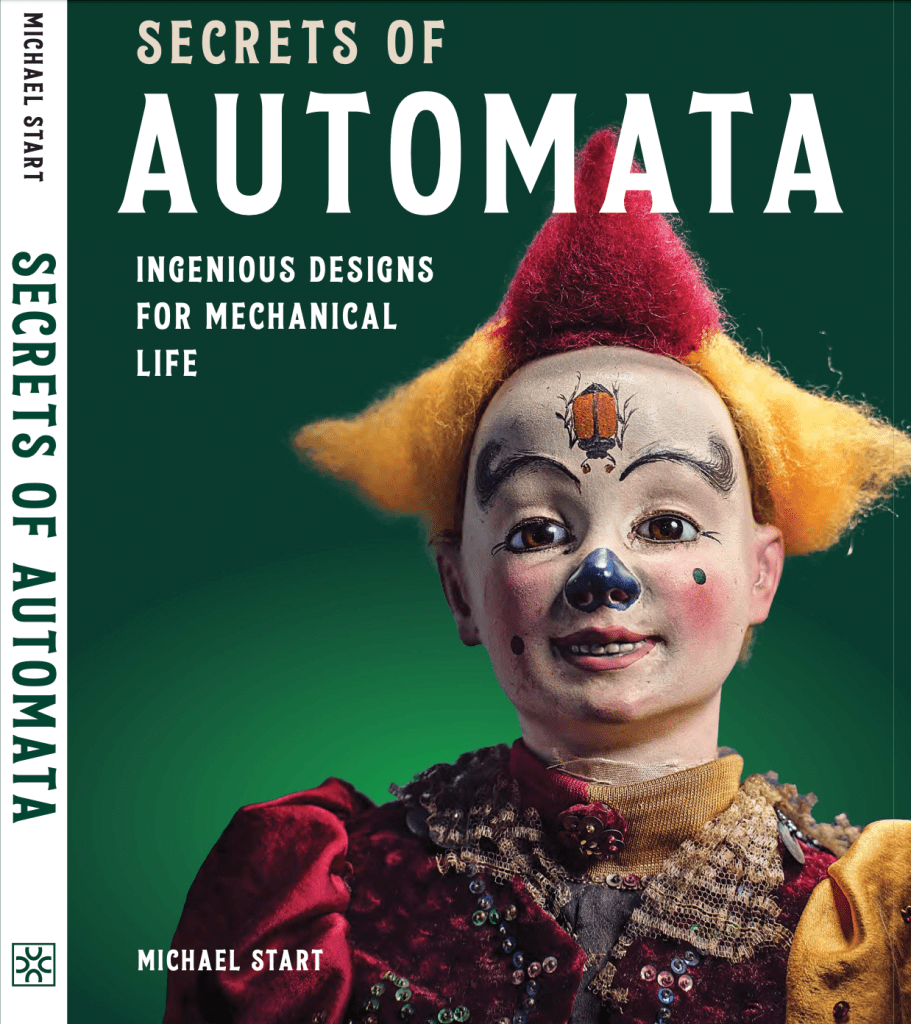 Most recently Michael wrote a book, if not ‘The’ book, on Automata. “Secrets of Automata – Ingenious Designs for Mechanical Life” One of the challenges was that there was no classification system for Automata. So, one had to be devised. i.e. Walking, Eating, Smoking, Birdsong and so on. In his talk he gave examples of each with pictures, videos, and technical drawings of the mechanisms to describe their operation.