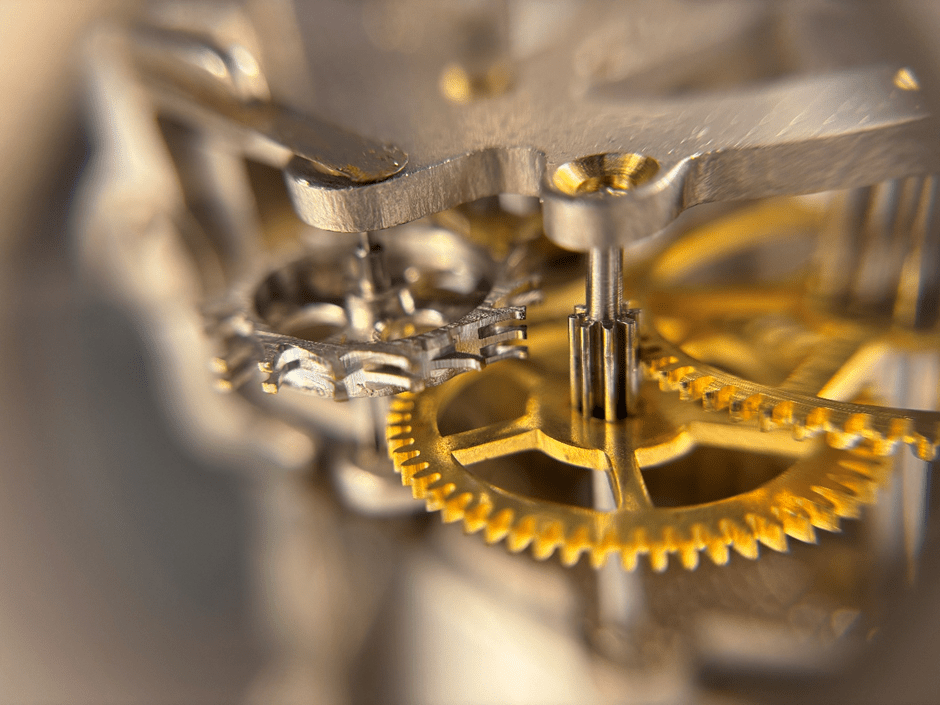 Separating the motion work and turning it by hand exposed some binding. Further investigation exposed fragile design/manufacture in controlling the alignment of the plates and concentricity in one of the wheels. Not helped by the dials mass pulling on the front plate. The motion work was passed to another member, Zen Chowaniec, to resolve.